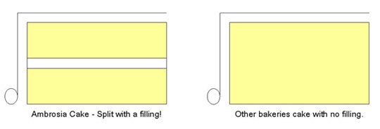 At Ambrosia we thrive on serving the best quality products. What sets us apart from other bakeries is how we split the layers of cake and use a filling of your choice like buttercream icing or fruit fillings for example.
