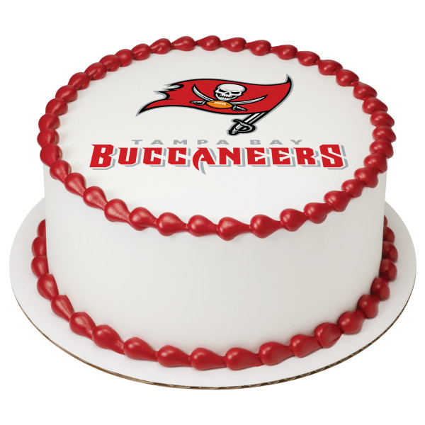 NFL - Tampa Bay Buccaneers Team PhotoCake® Edible Image® Cake comes as seen in the image. Choose the cake flavor and filling below.