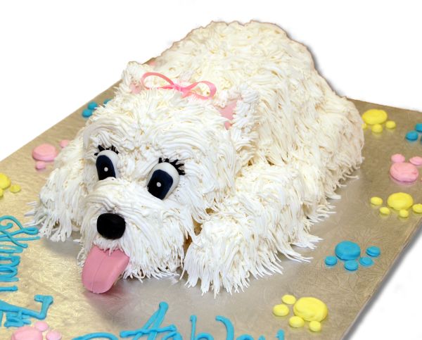 This cute little puppy can have either chocolate or white (hair) icing. Perfect for the dog lover in your life! Sculpted cakes can only have a filling of white or chocolate icing.