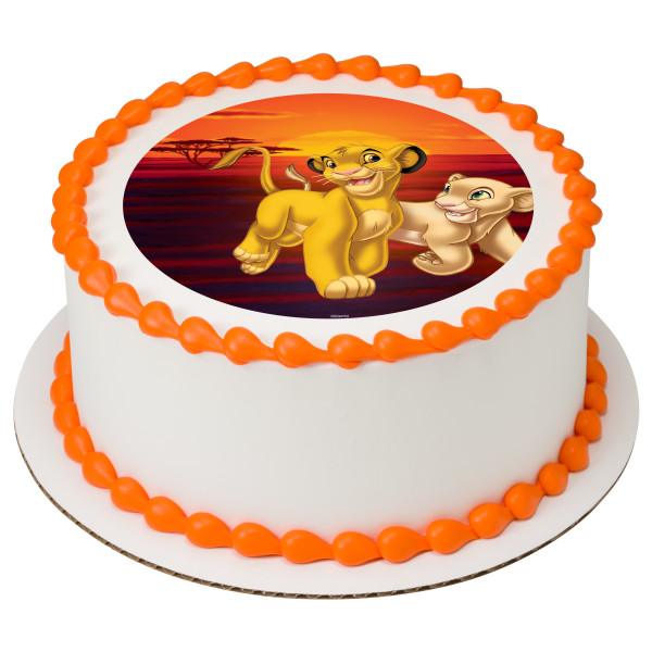 Disney The Lion King Simba and Nala PhotoCake® Edible Image® - Edible Image® Cake comes as seen in image. Choose the cake flavor and filling below. Add the side print to this cake too!