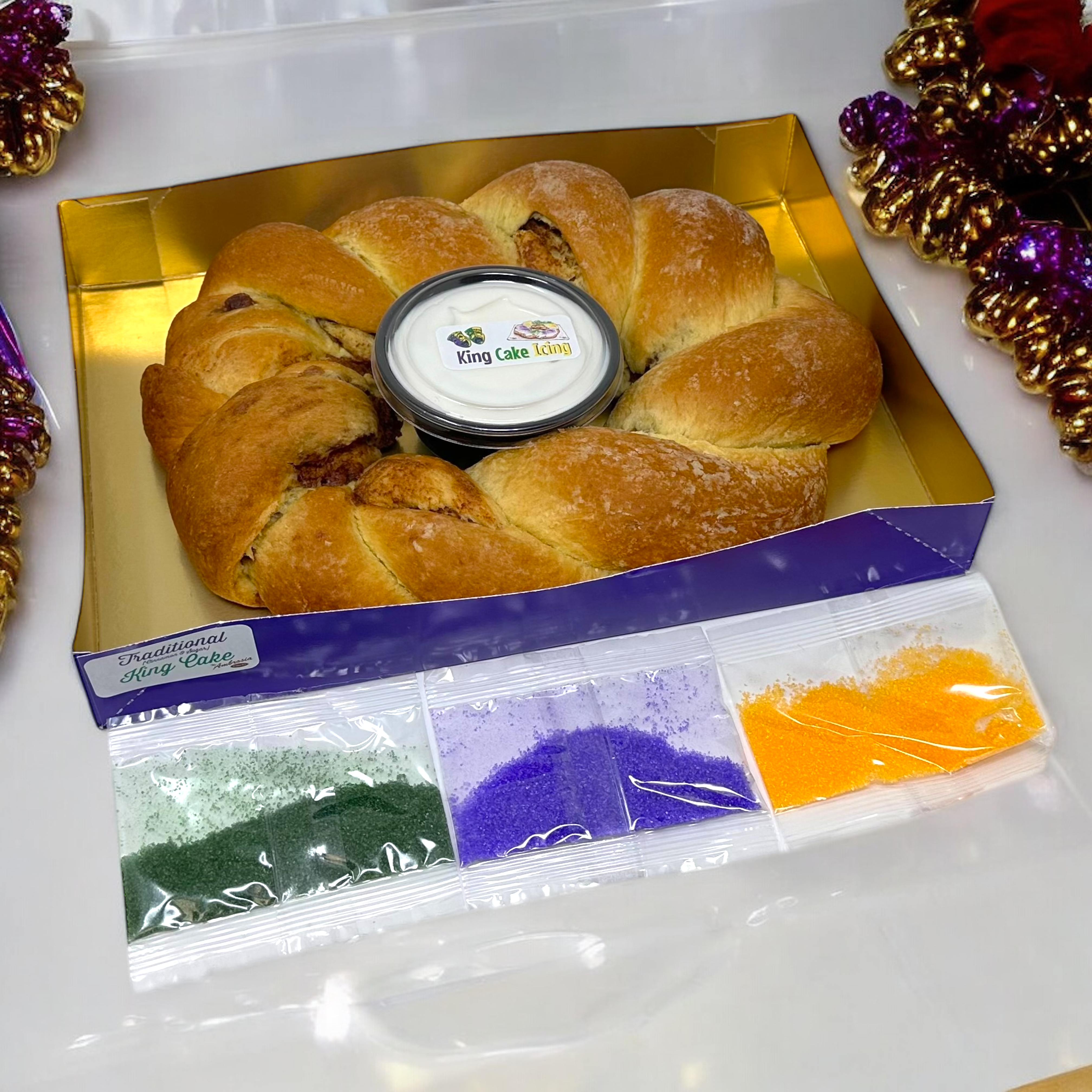 To guarantee maximum freshness, we shrink-wrap our King Cakes and ship them undecorated. This not only protects them during transit but also lets you decorate it yourself — allowing you to fully enjoy the spirit, tradition, and FUN of Mardi Gras right at home! đźŽâś¨ This works out perfectly with the way we ship our King Cakes, giving you both a delicious treat and a hands-on celebration experience.