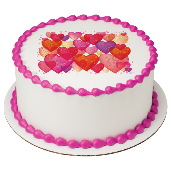 Share the love with our Hearts PhotoCake® Edible Image®—a delightful design featuring a cascade of colorful hearts perfect for any love-filled occasion. Whether you're celebrating Valentine's Day, an anniversary, or simply want to show someone you care, this charming cake design adds warmth and joy to every slice. Personalize it with your own message to make it extra special!