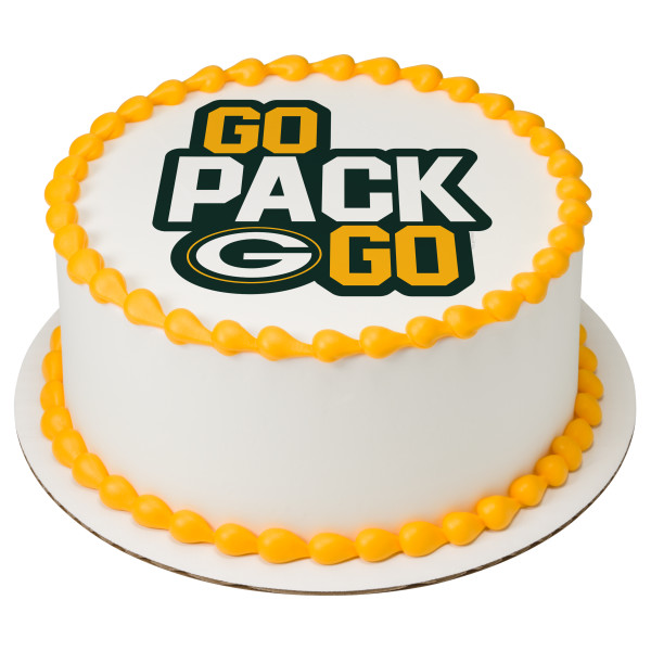 NFL Green Bay Packers Go Pack Go PhotoCake® Edible Image® Cake comes as seen in the image. Choose the cake flavor and filling below.