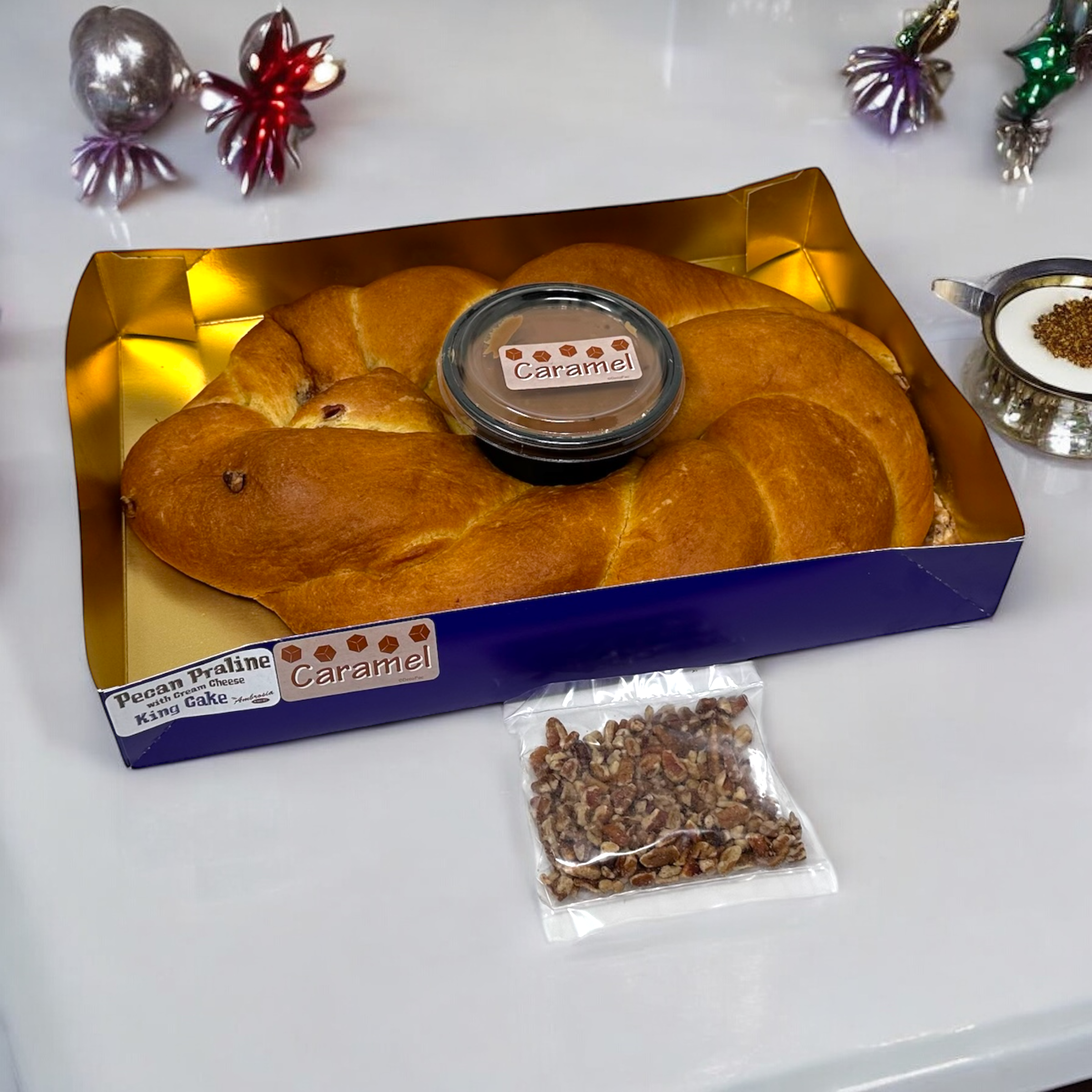 The Pecan Praline King Cake has Cinnamon and Sugar on the inside along with Pecan Praline Filling with or without Cream Cheese. Choose below...